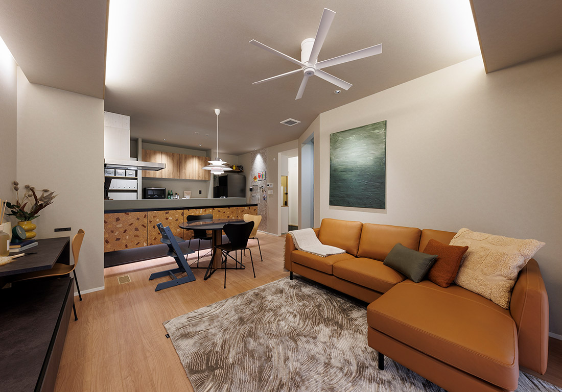 間に天井や床をつくらず、下から上まで二階以上突き抜けてつくられた空間。開放的な空間が生み出すことができ、光を取り入れることや、風の通り道をつくることもできる。