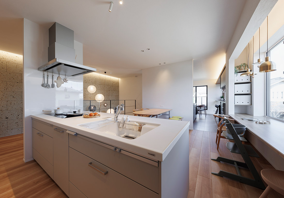 一本の原木から切り出した木材を床に使用。質感、風合いに天然木本来の良さが出る。室内の湿度を調整する性質があり、断熱性にも優れている。