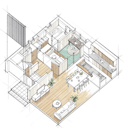 二世帯住宅のパイオニアが「子どもを育てる」、「孫と楽しむ」理想の二世帯住宅をカタチにしました。「ダウンフロア」、「屋上庭園」、「オープンテラス」など、夢がいっぱいです。