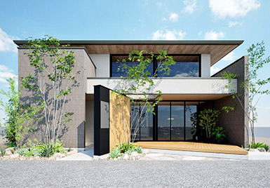大きな屋根の下、中も外も1階も2階も一体的にのびのび暮らせる住まい
