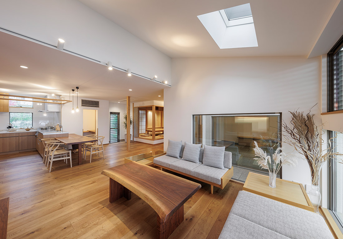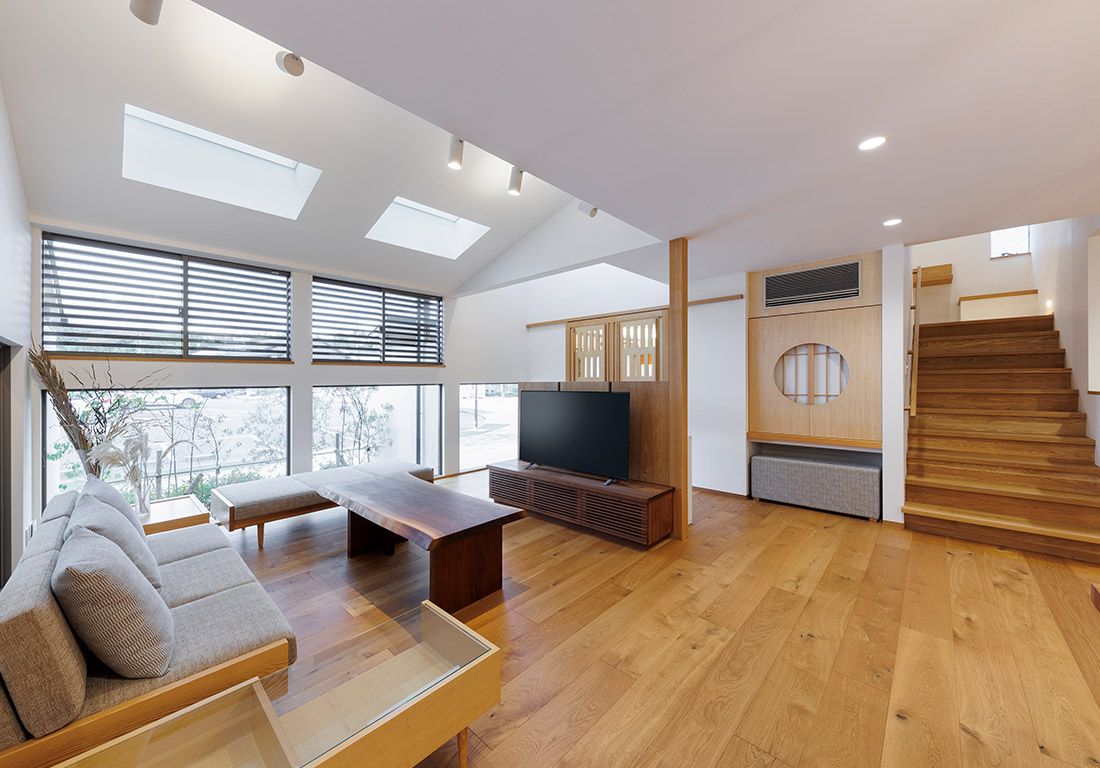 土間や吹き抜けを活かした匠の設計で、高気密・高断熱の省エネ性も兼ね備えた開放的なモデルハウスです。