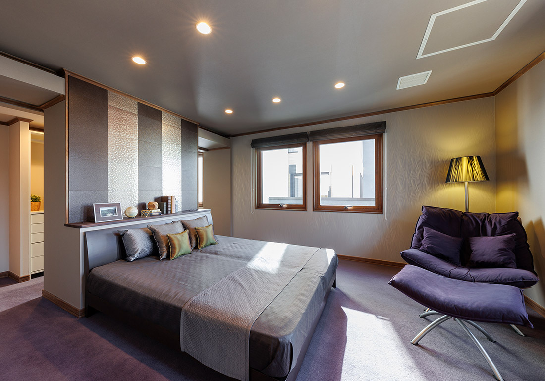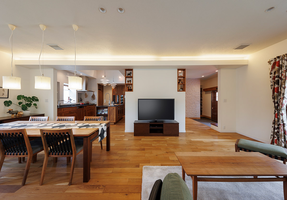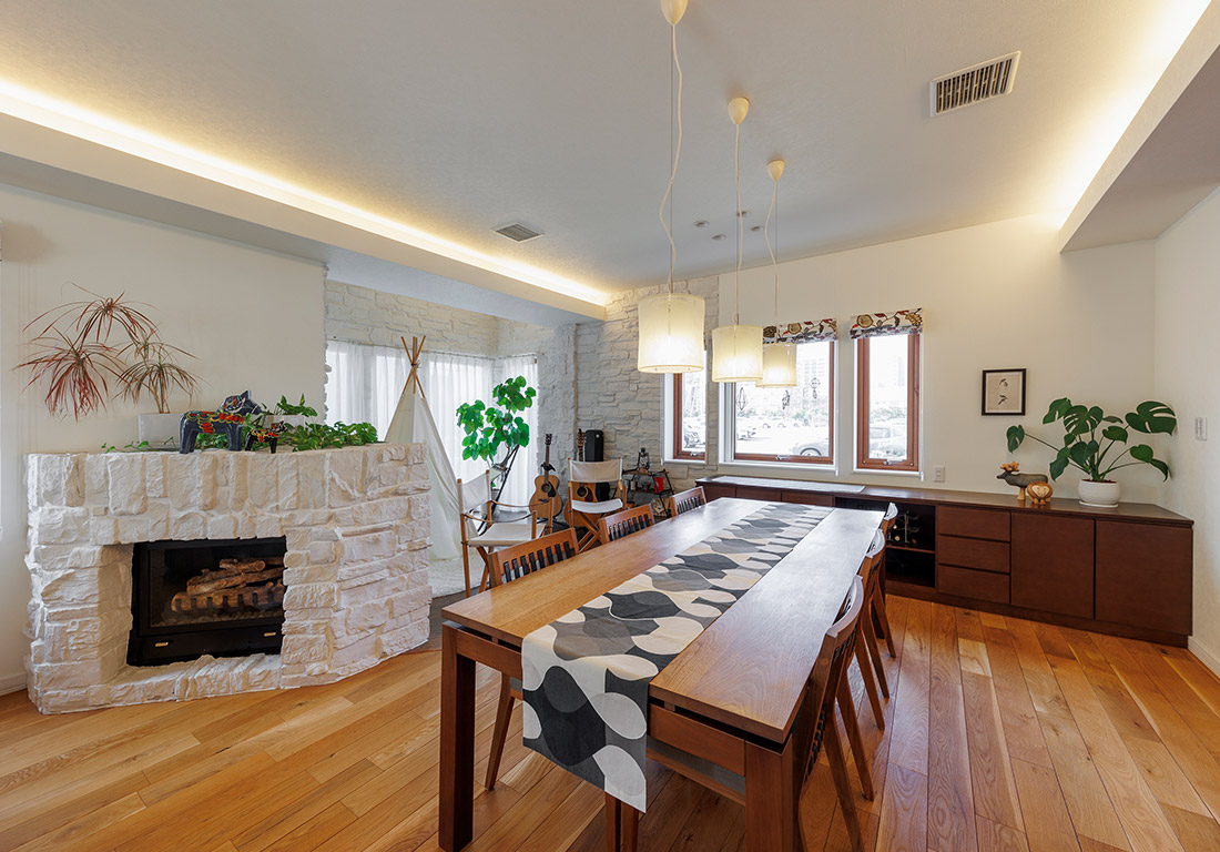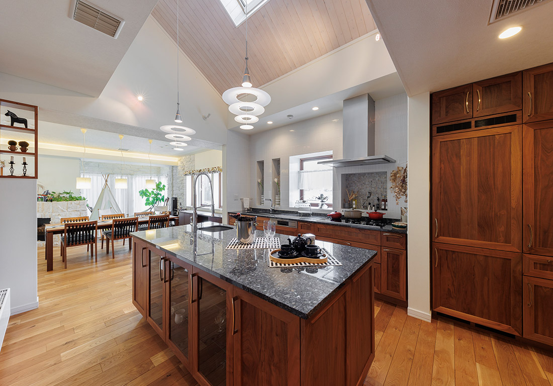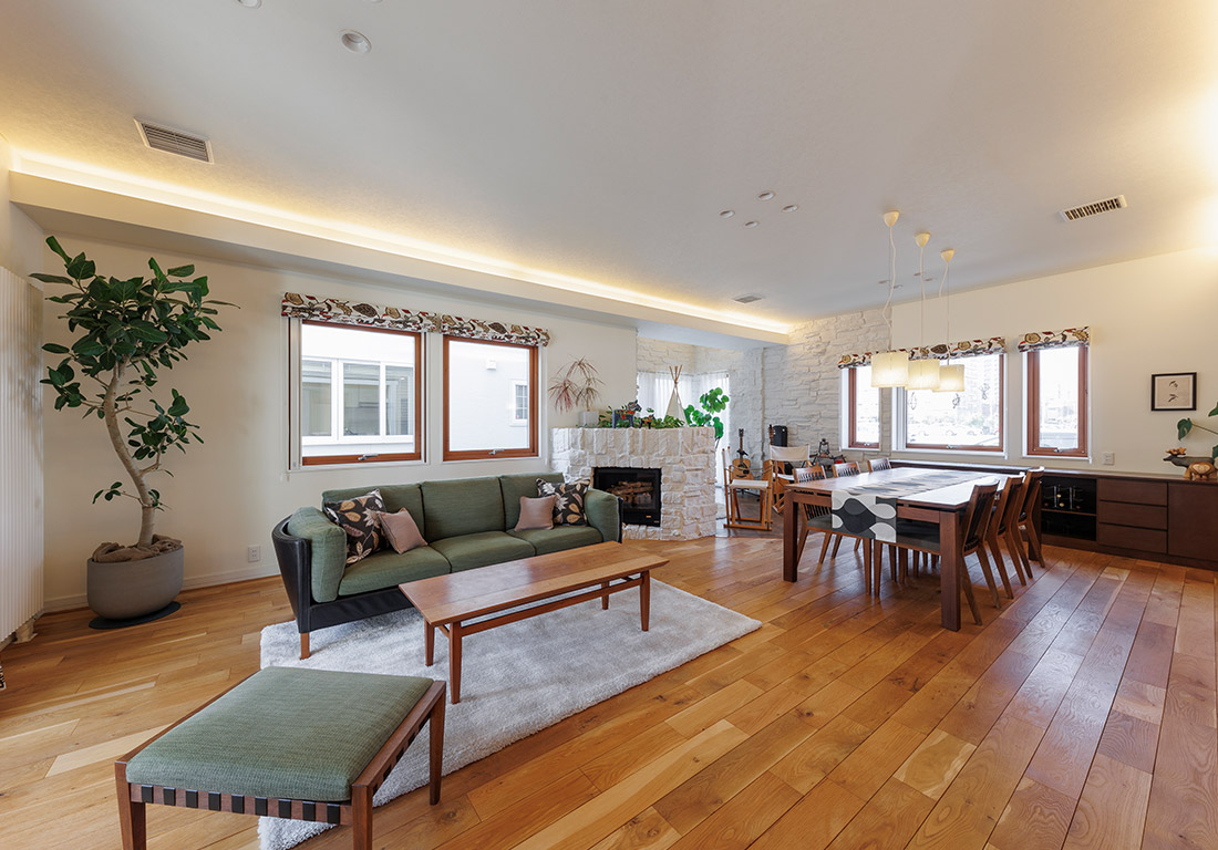 独自の木製サッシ三層ガラス窓により、寒い冬でも結露の心配がありません。断熱材を充填した厚い壁を組み立てる木質パネル工法により、高断熱・高気密で真冬も真夏も最小限の冷暖房で快通に過ごせます。