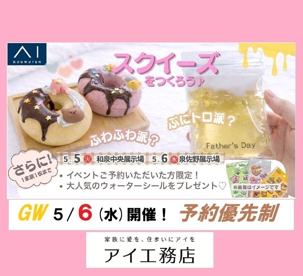 GW 5/6(水・祝)開催! ★世界に一つだけ!★ わくわくものづくり体験 「スクイーズを手作りしよう!」 予約優先制