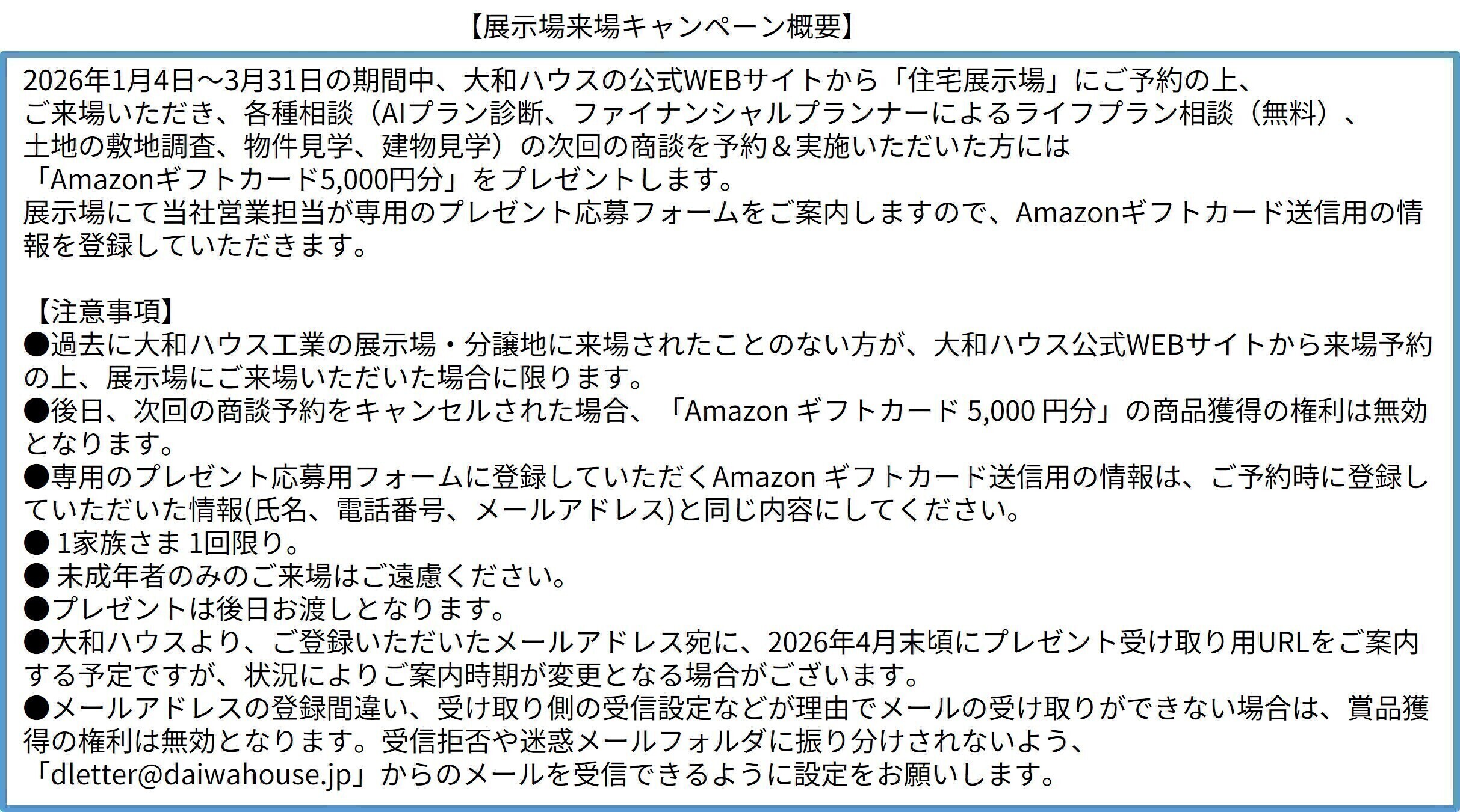 2026年1月4日(日)から春の住宅フェア開催! ★Amazonギフトカードプレゼント★(条件あります)