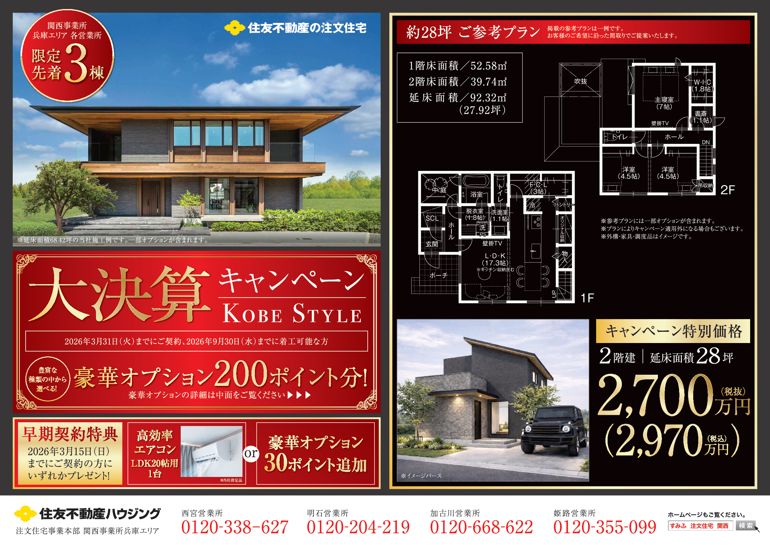 2026年3月31日(火)までにご契約、かつ2026年9月30日(水)までに着工可能な方へ、キャンペーン特別価格をご用意いたしました。