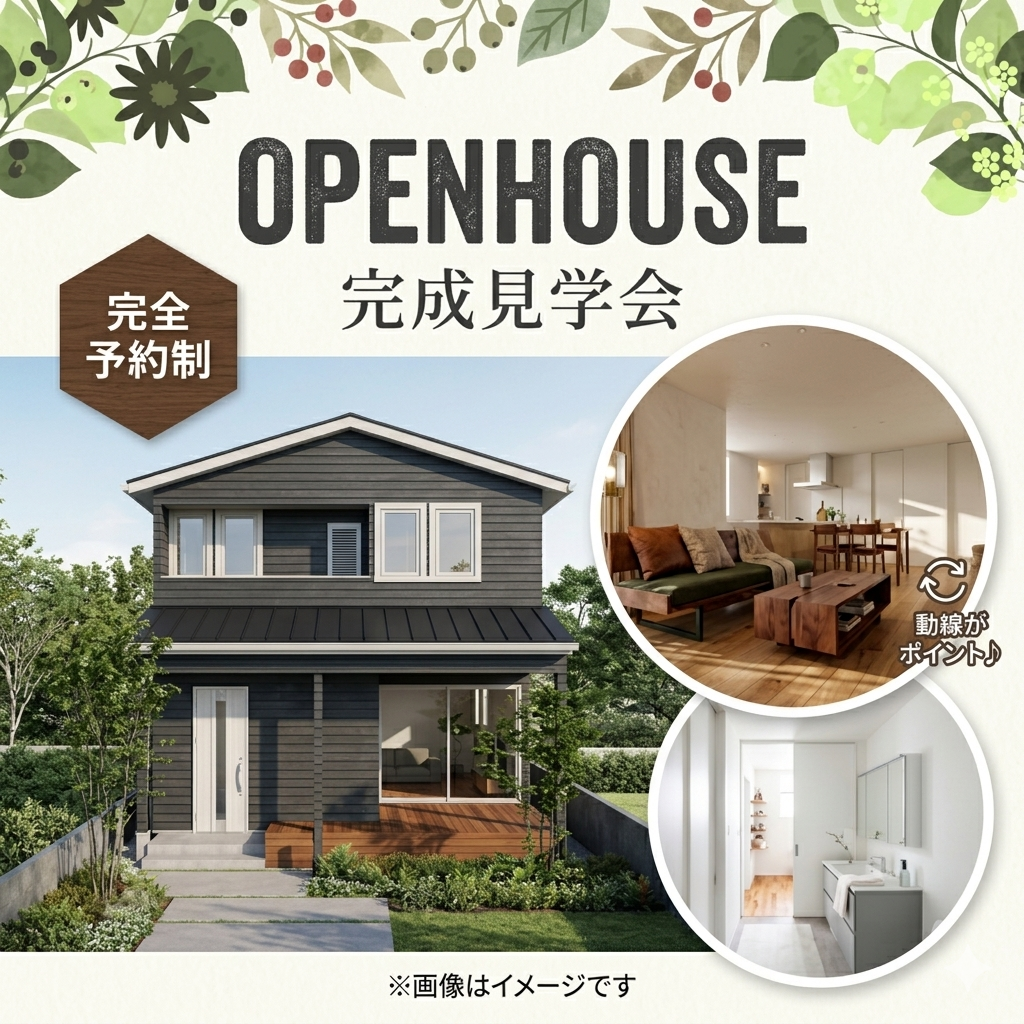 お施主様のご厚意により完成現場見学会を開催いたします。