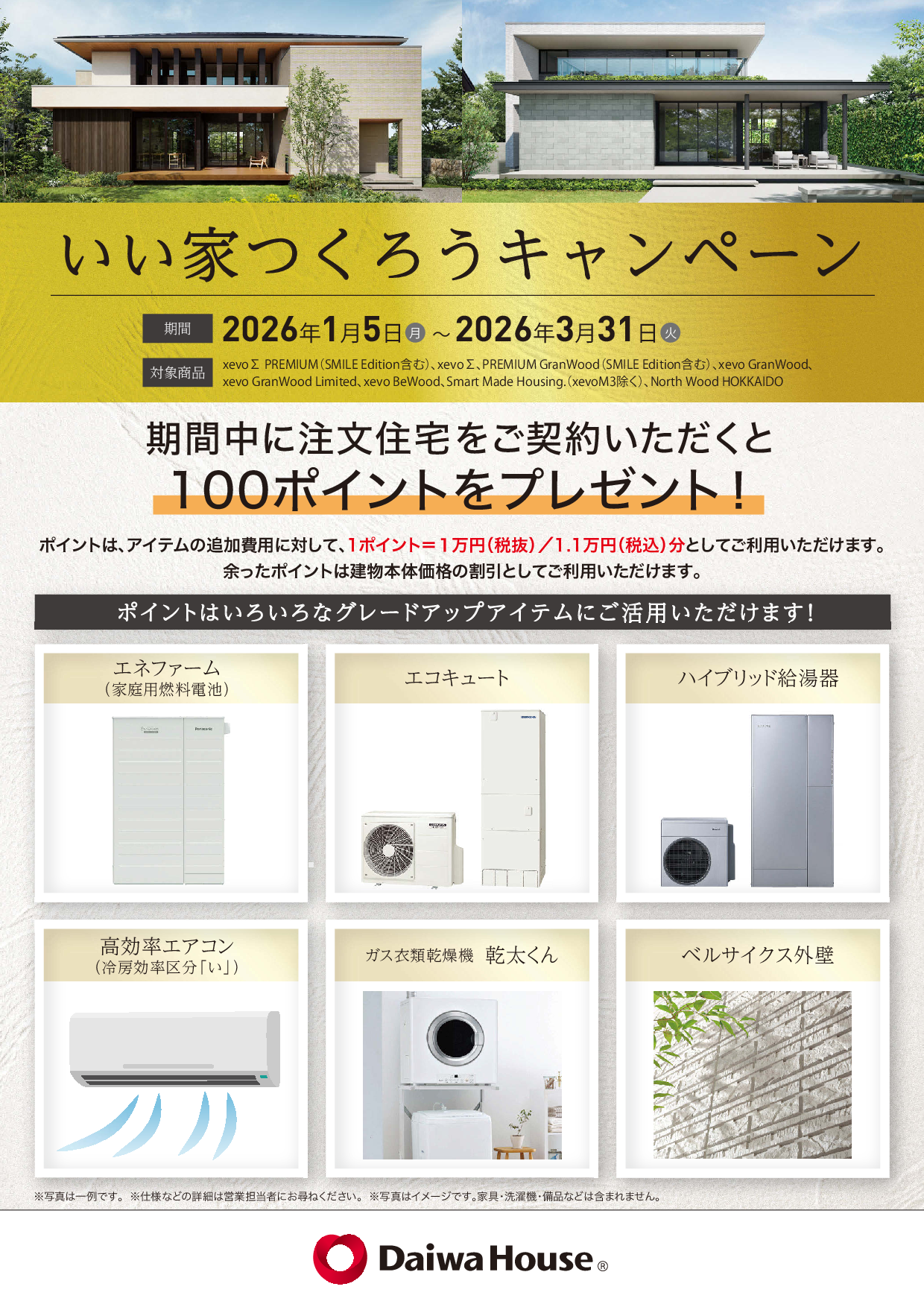 2026年 3 月 31 日までの期間中住宅展示場にご予約の上、