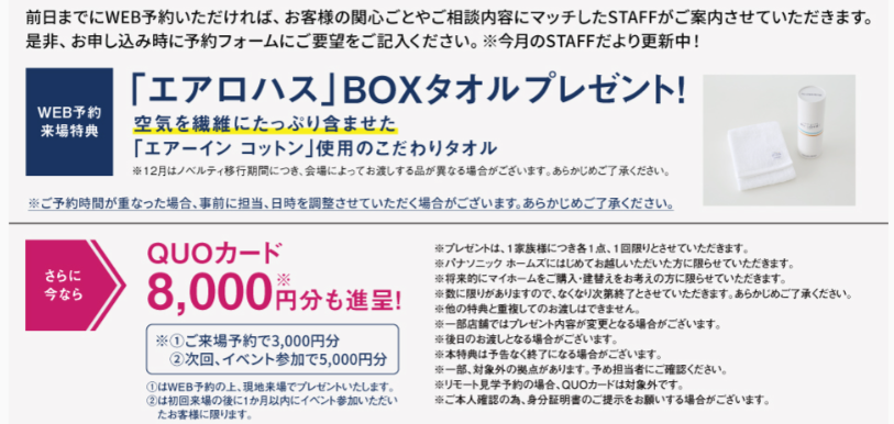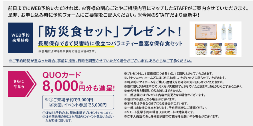 ※パナソニッホームズを初めてご見学頂く方限定のクオカードプレゼントです。
