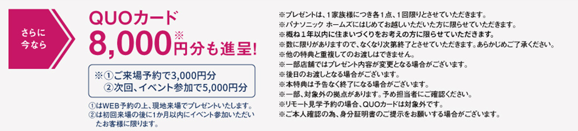 ※パナソニックホームズを初めてご見学頂く方限定のクオカードプレゼントです。