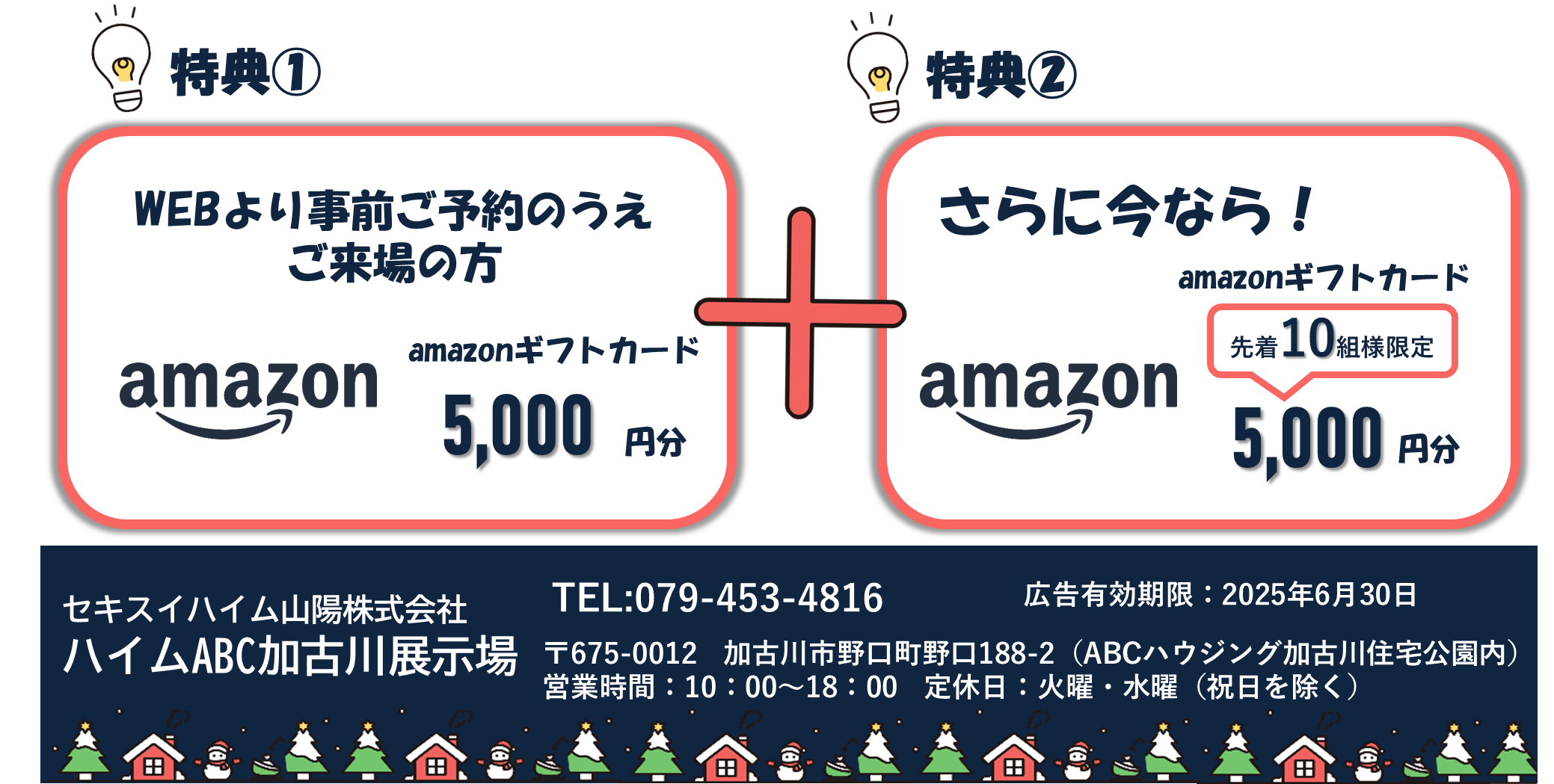 ✨ハイムABC加古川展示場限定✨今だけ10,000円のamazonギフトカードプレゼント