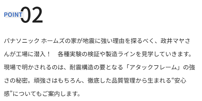 当社の強い構造と確かな品質について、政井マヤさんがレポート!