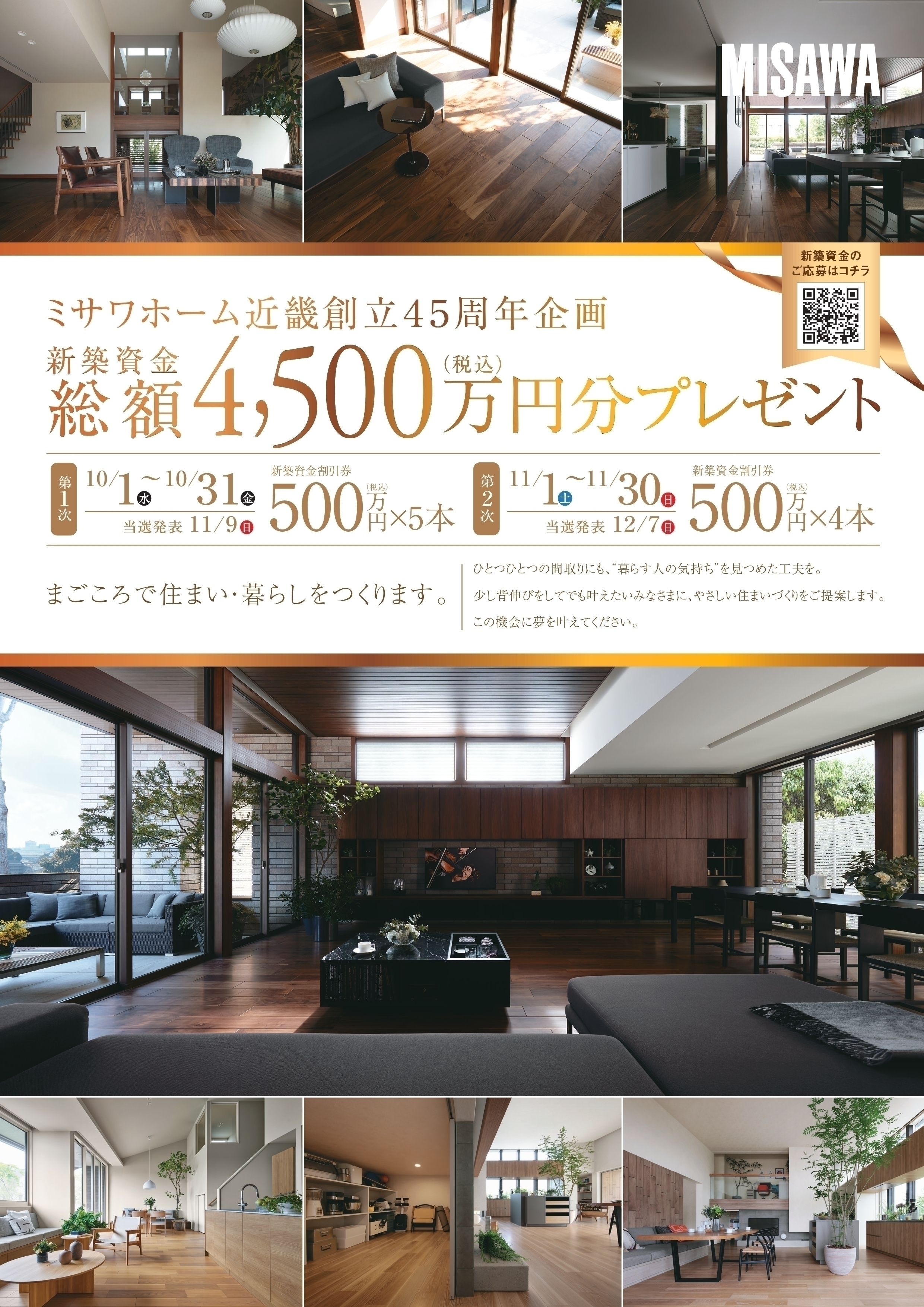 総額4500万円分(税込)!新築資金プレゼントキャンペーン開催中!