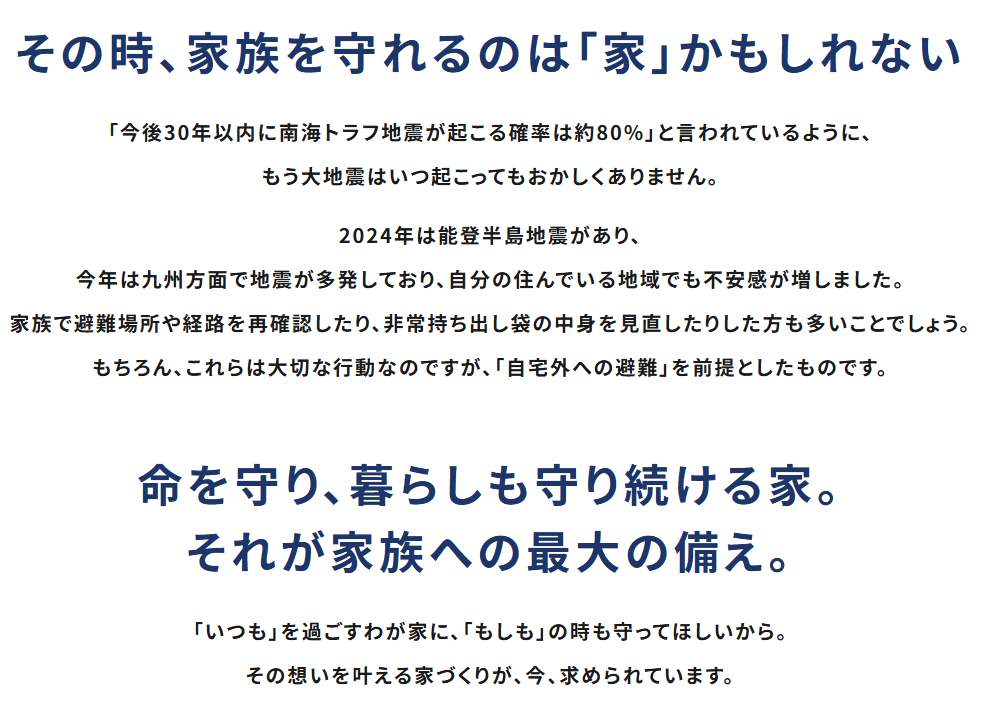 繰り返す地震から家族の命を守り、その後の暮らしも守り続ける家とは?