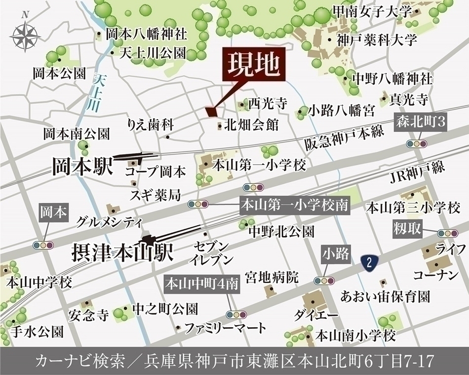 阪急神戸線「岡本」駅まで徒歩5分~6分!