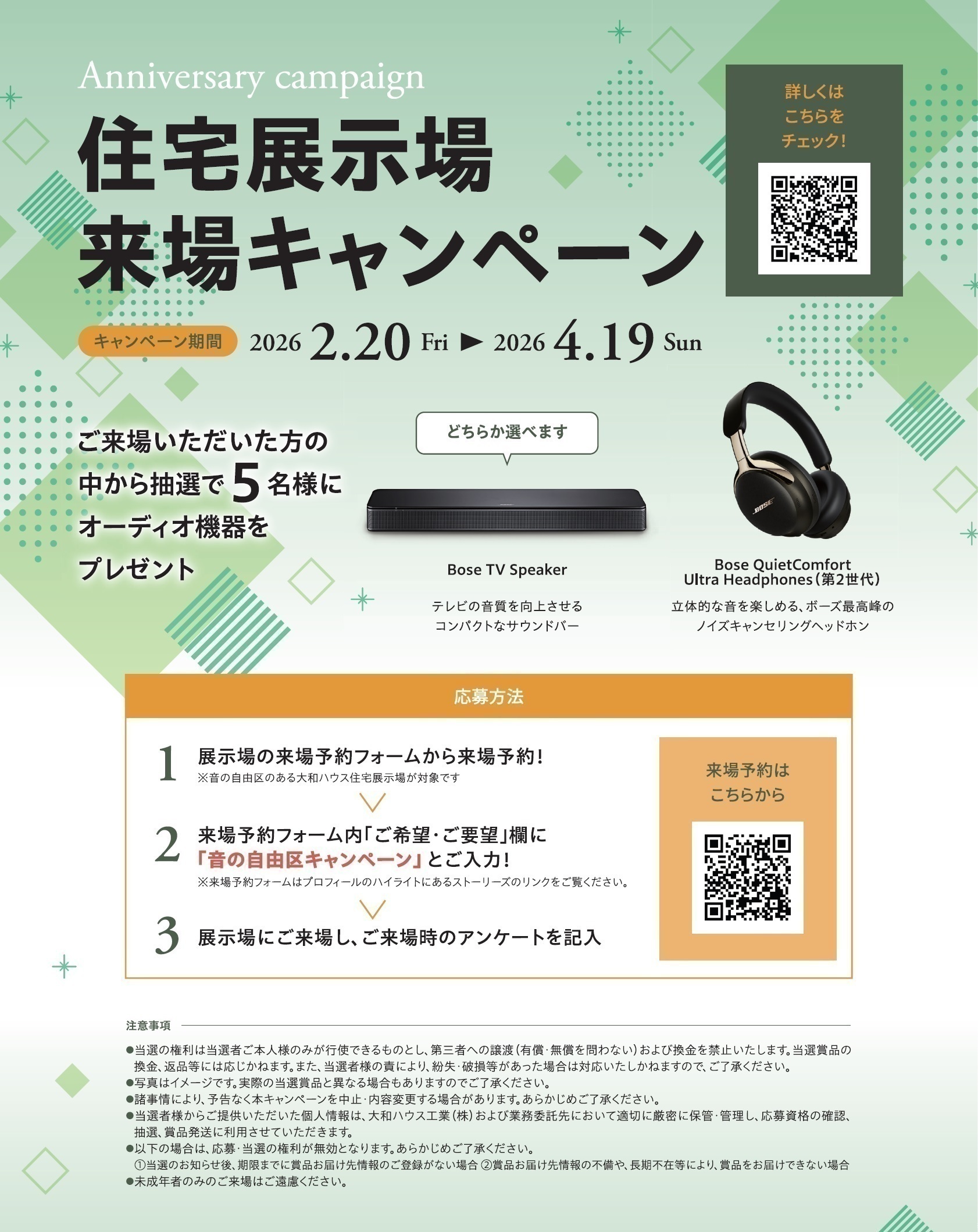 期間中、大和ハウスの公式WEBサイトから住宅展示場にご予約&ご来場。