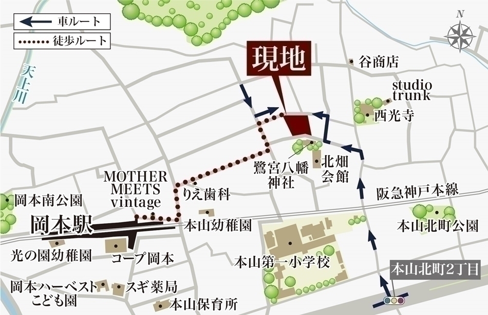 阪急神戸線「岡本」駅まで徒歩5分~6分!