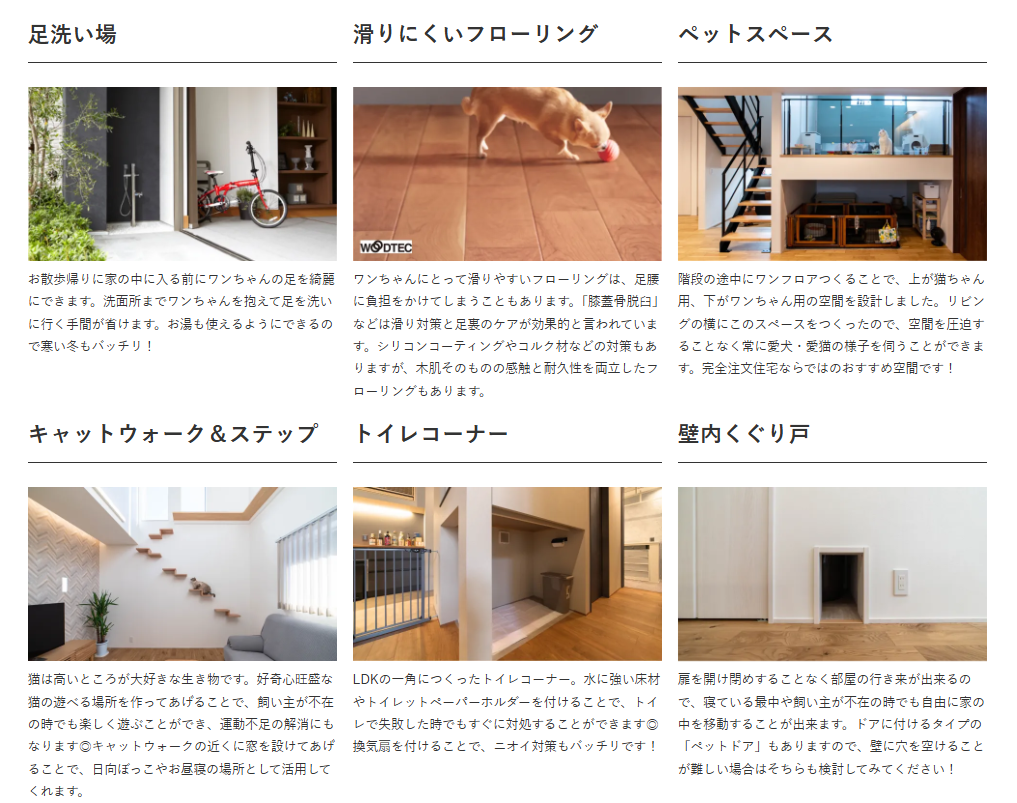 「猫と犬が絶妙な距離感で過ごせる配置」や「多頭飼いでも掃除がしやすいレイアウト」など、注文住宅ならではの細かな配慮を形にします。