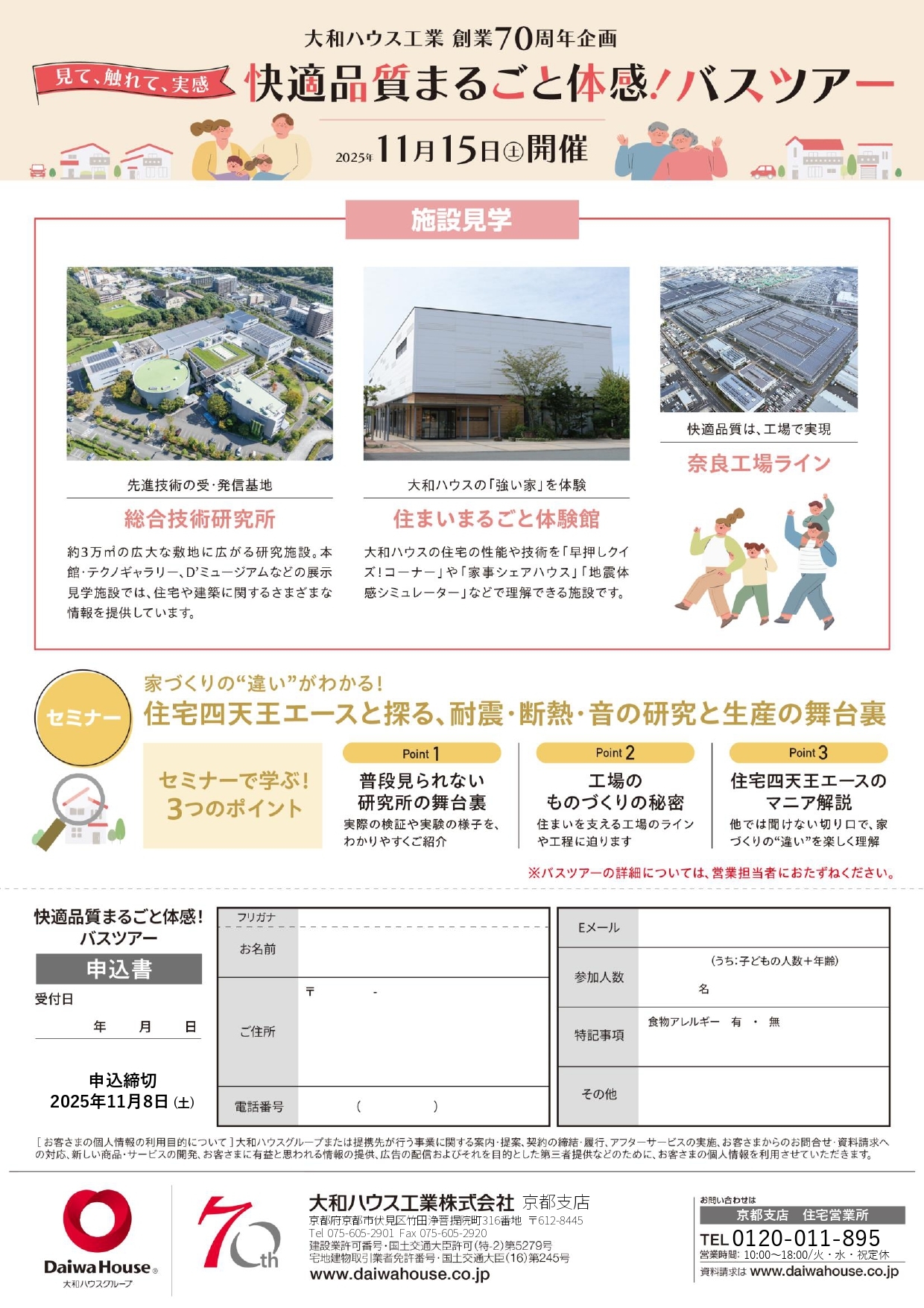 大和ハウス工業 久御山展示場(TEL 0120-70-8844)までお気軽にご連絡ください。