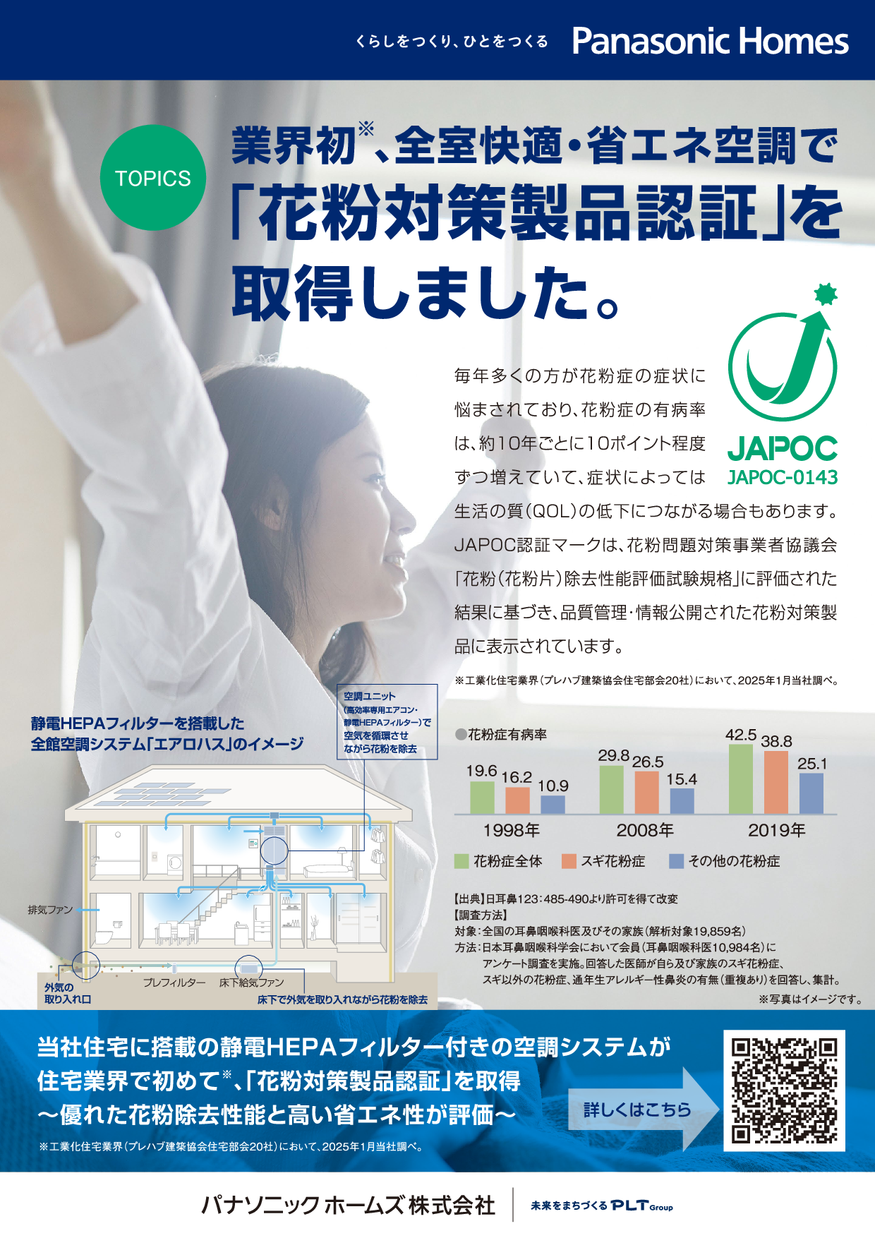 業界初※、全館空調で「花粉対策製品認証」を取得しました!