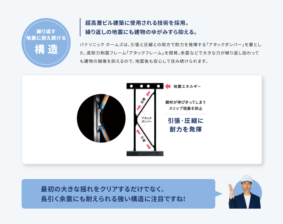 繰り返す地震に強い家が、家族との日常を守り続ける。