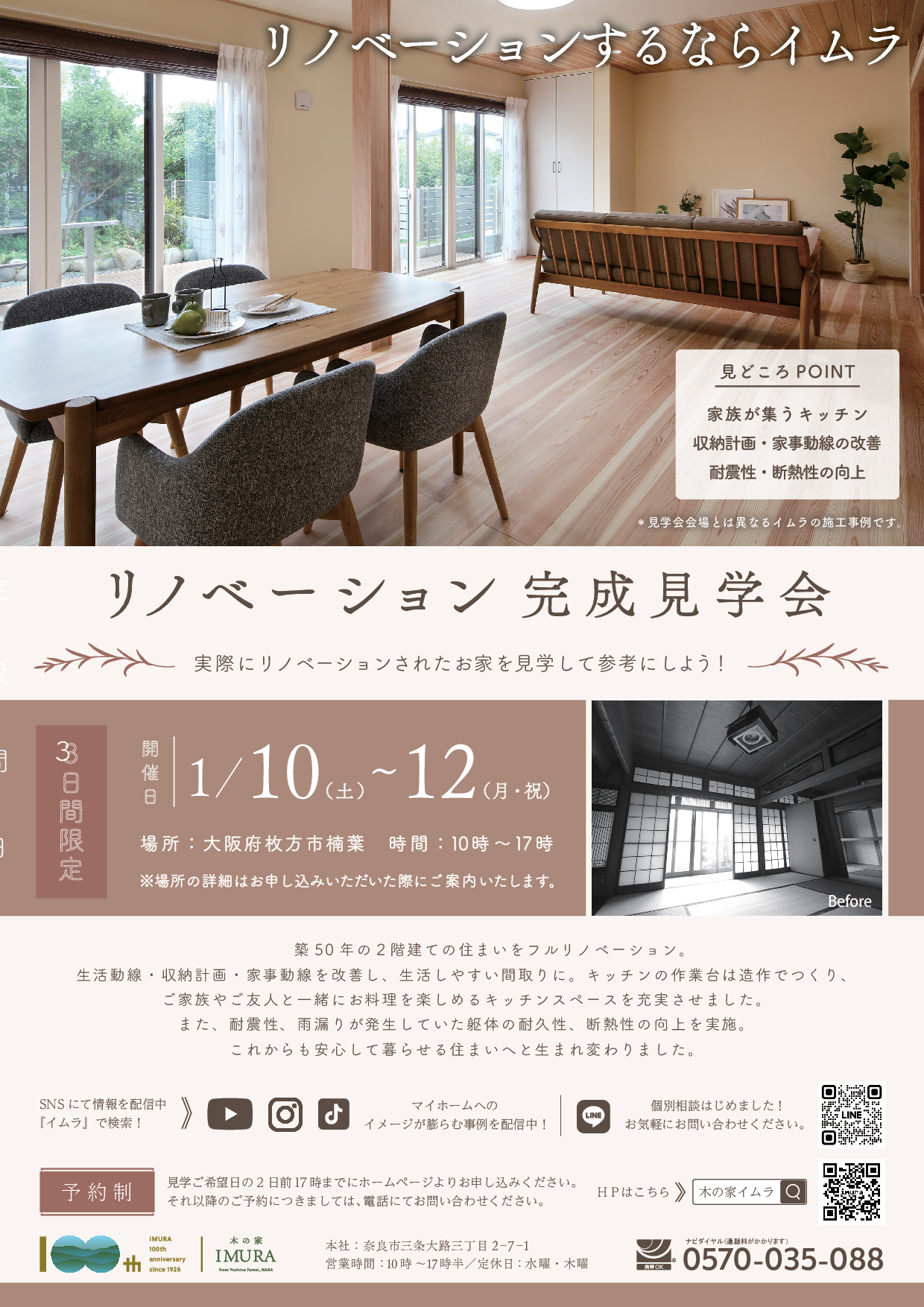 【枚方市】🏠リノベ完成見学会🏠3日間限定\築50年のお住まいをリノベーション/