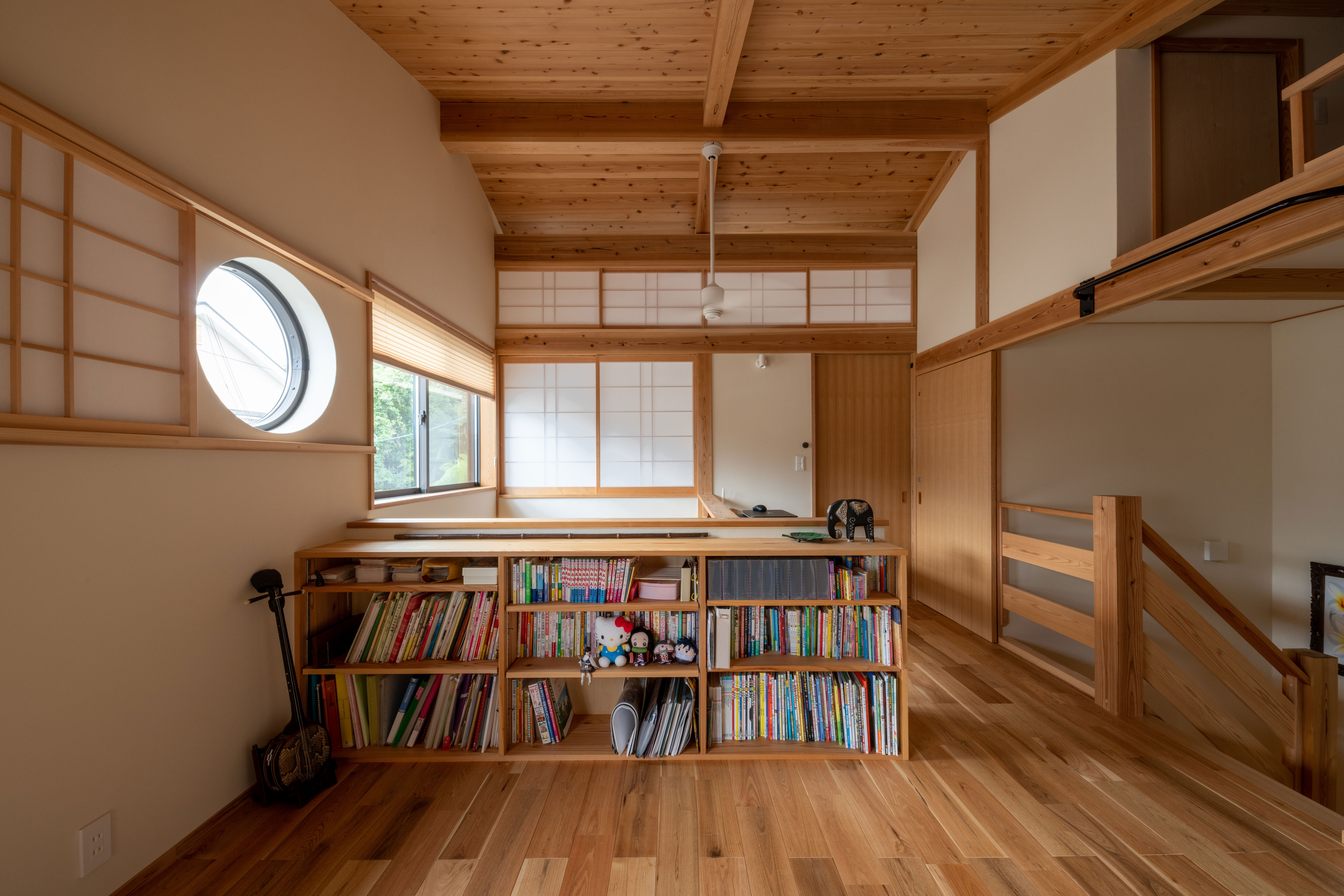 ![]() | 2階のホールは家族の共有スペースにホールはお友だちが遊びに来た際にフリールームと一体にも使うことができます。 本棚には家族の本やお子さんの工作作品を置くこともできます。 |