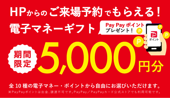 選べる電子マネー・ポイント【期間限定】5,000円分プレゼント!