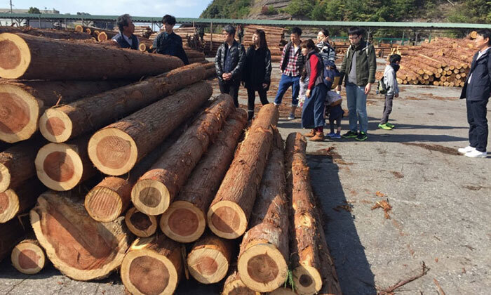 08:30 コアー建築工房出発 14:30 製材工場見学・大黒柱選び |