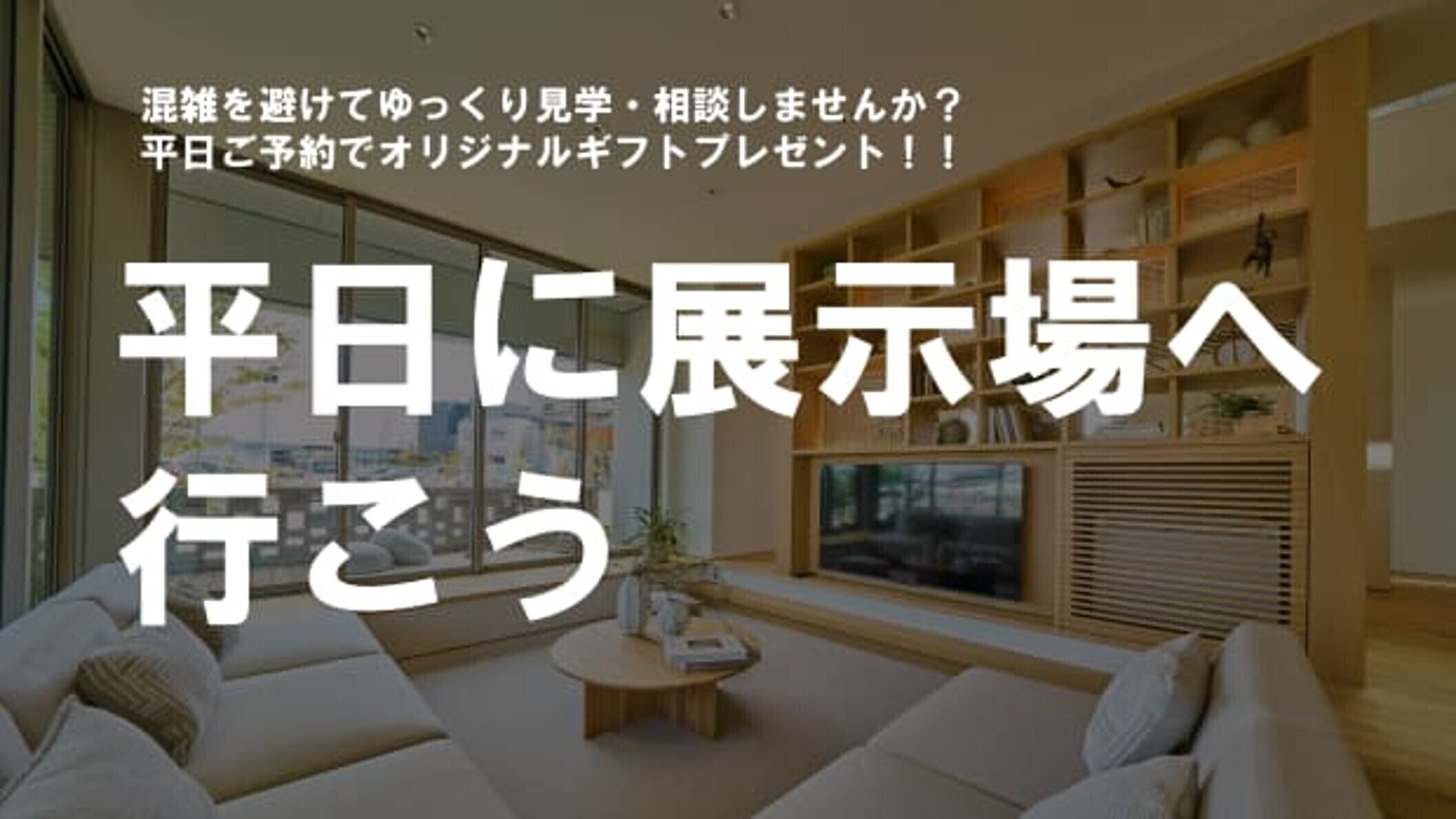 平日に展示場へいこう♪混雑を避けてゆっくり!平日ご予約限定でオリジナルギフトプレゼント🎁