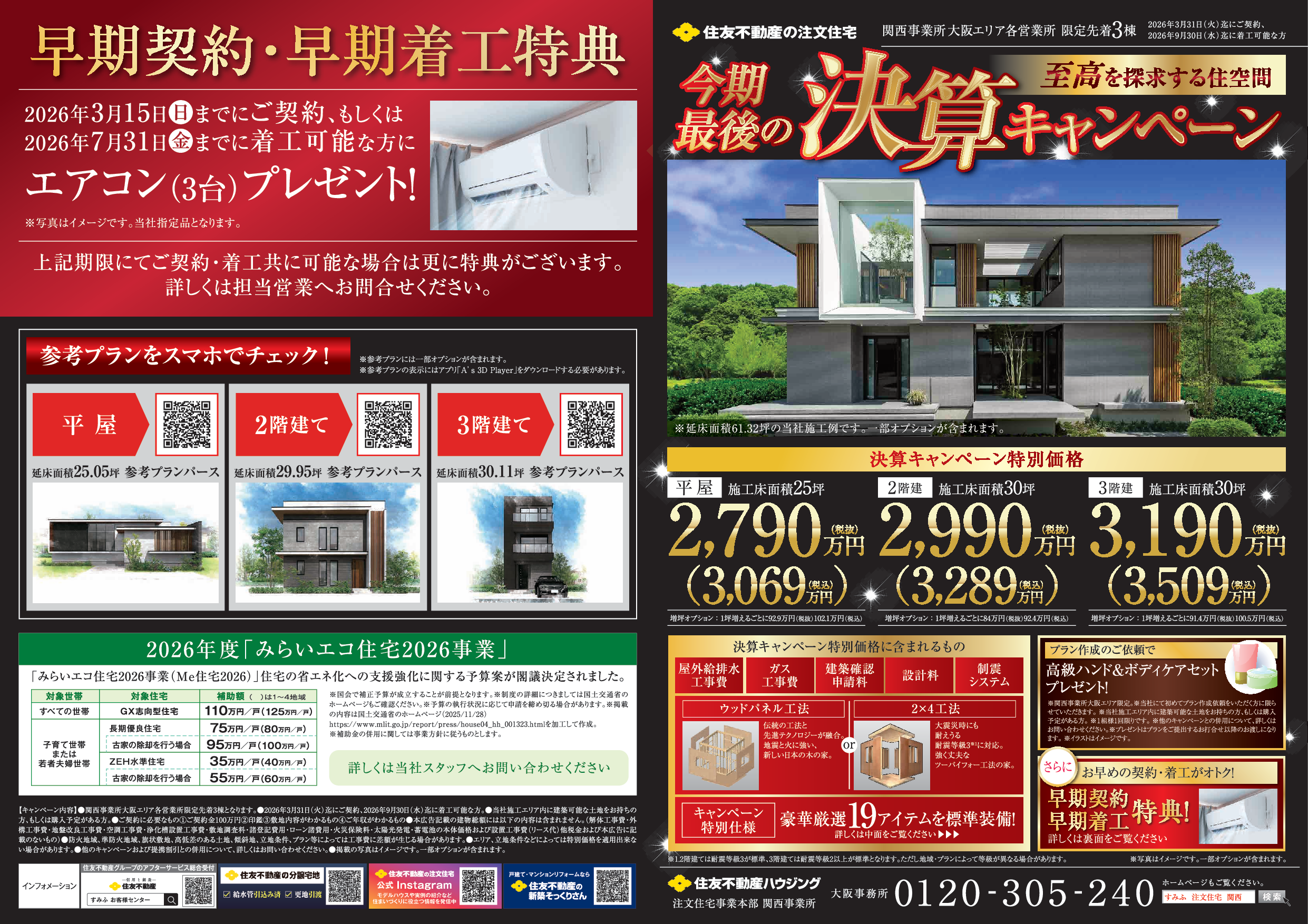 2026年3月31日(火)までにご契約、かつ2026年9月30日(水)までに着工可能な方へ、キャンペーン特別価格をご用意いたしました。