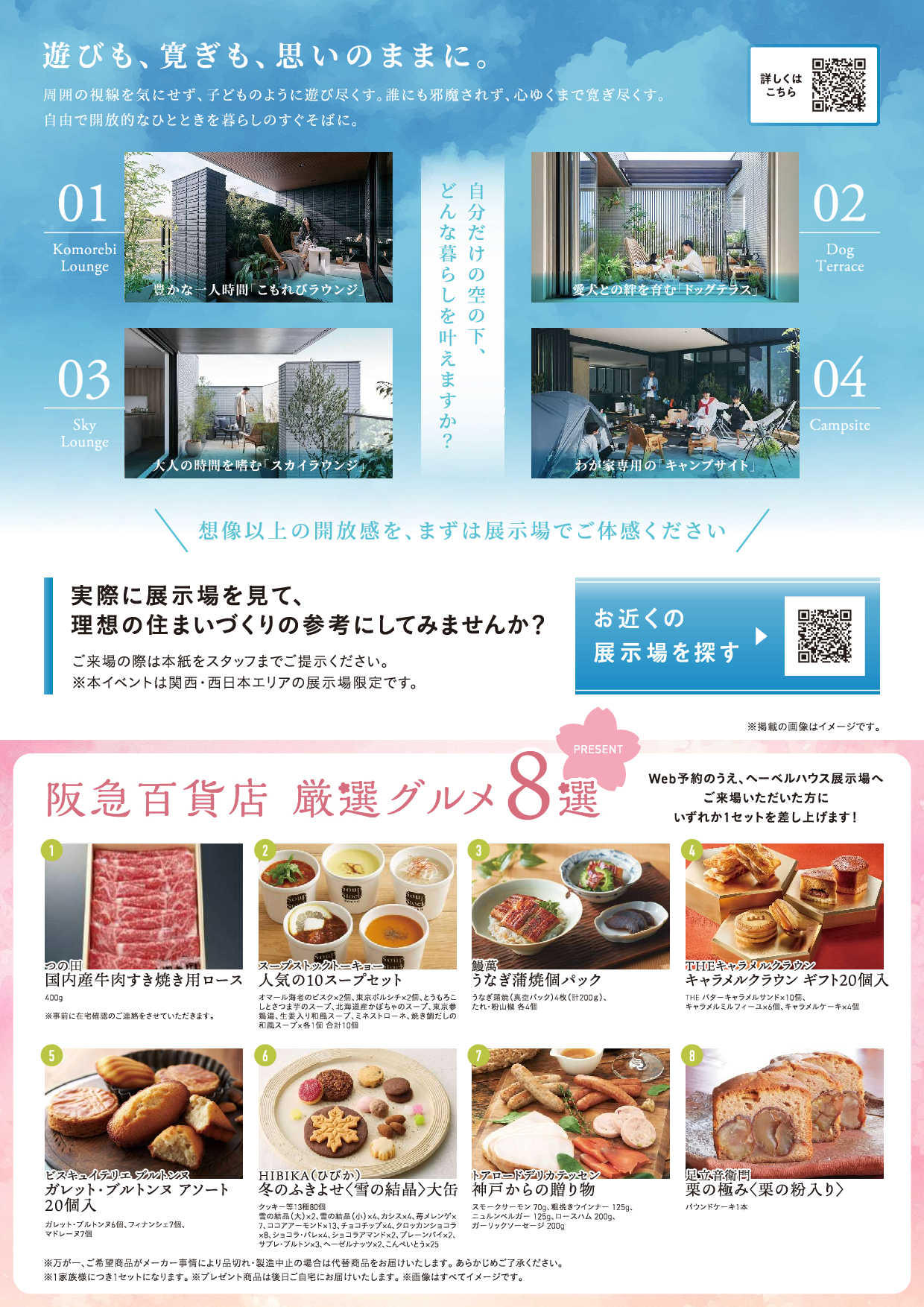 また期間限定で4月にご予約+ご来場頂いたお客様に「阪急百貨店 厳選グルメ」を差し上げます。この機会に将来に向けたお住まい作り初めてみませんか?