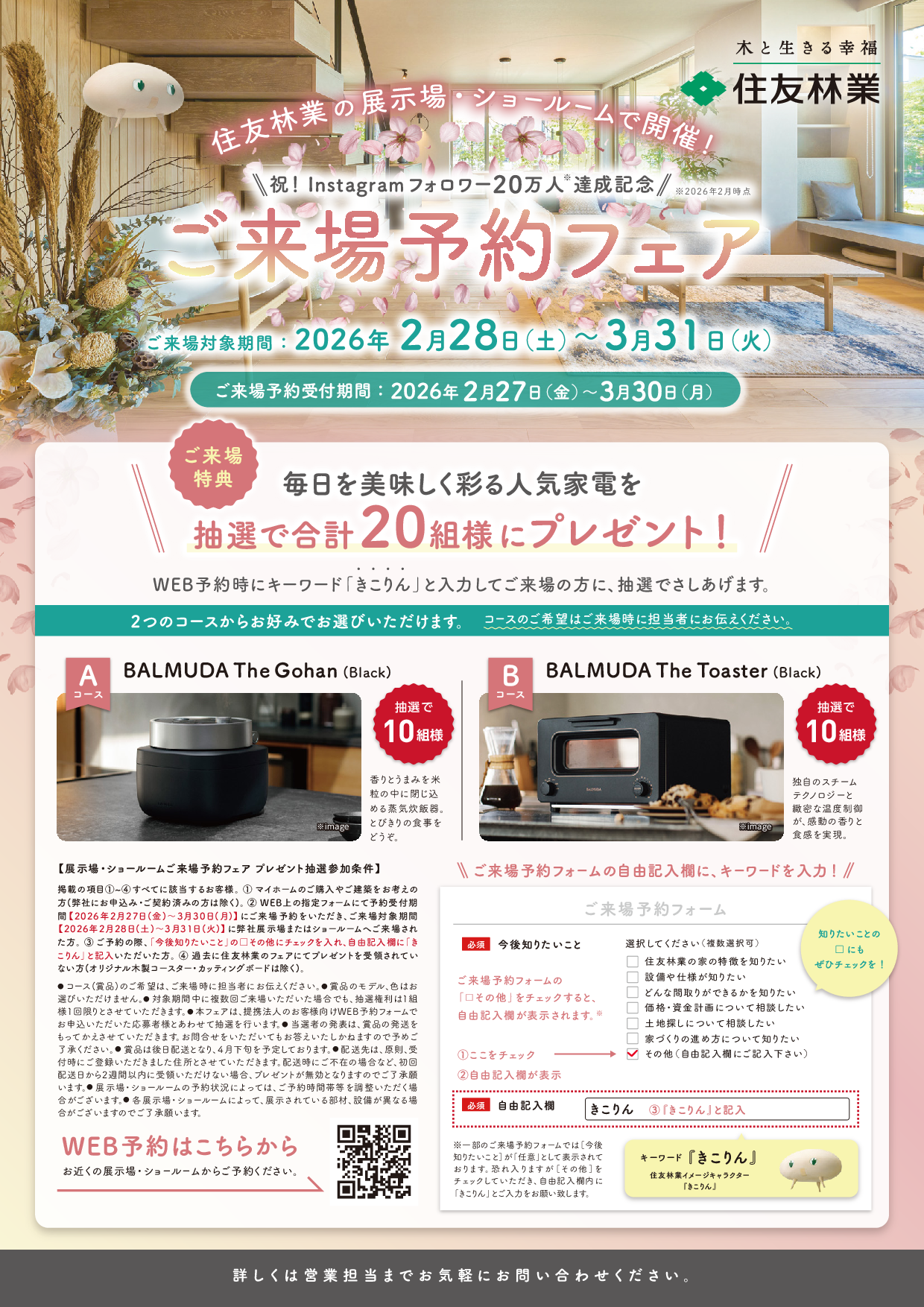 Instagramフォロワー20万人達成記念! ご来場予約フェア!!