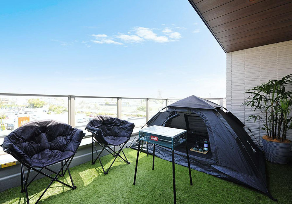 二階建てならではの見晴らしのいいバルコニーは、シアタールームに隣接しており、ベランピングを楽しんだりホームパーティーをしたりとセカンドリビングとして使えます。1階のメインリビングは床面から一段下げてラウンジ仕様に。一味違う個性あふれる空間です。