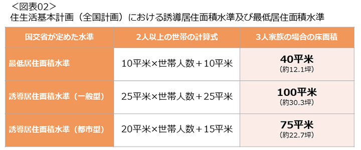 床面積に関しては、国交省が定めた以下のような水準があります。(図表02)