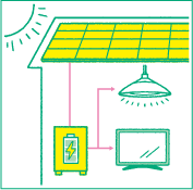 ソーラーパネルを屋根の上に設置し、直接的に電力に変換する発電方式。太陽さえ出ていれば発電できるため、停電時でも電気が使用できる。