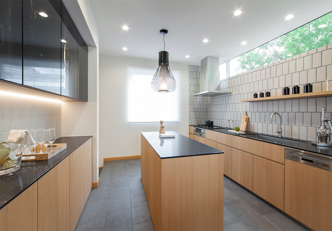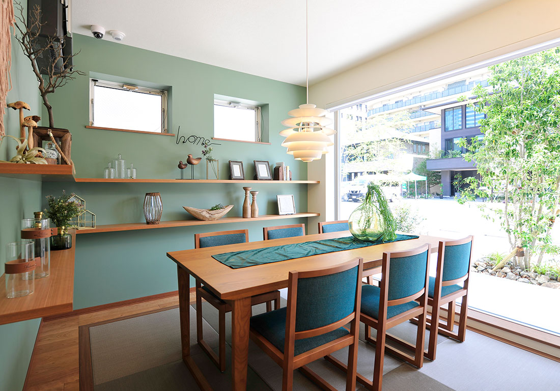 家の周りの木々が素敵なら、一部を切り取って絵のように。高窓からの緑がとてもきれいです。