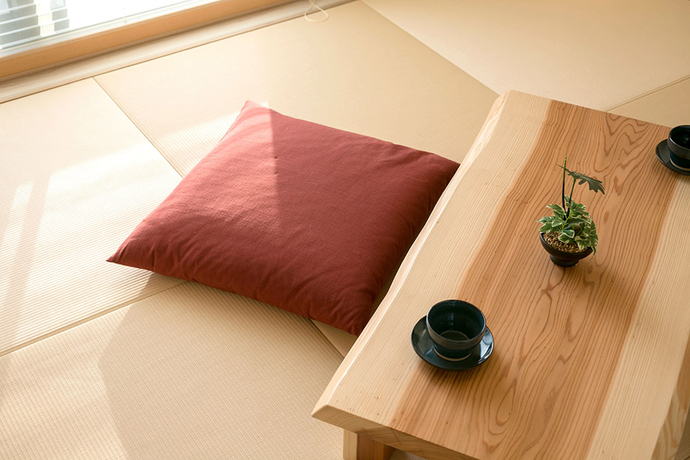 対策: 和紙や樹脂で作られた「高機能畳」を採用すると、撥水性が高く、日焼けや摩耗にも強いためメンテナンスが楽になります。