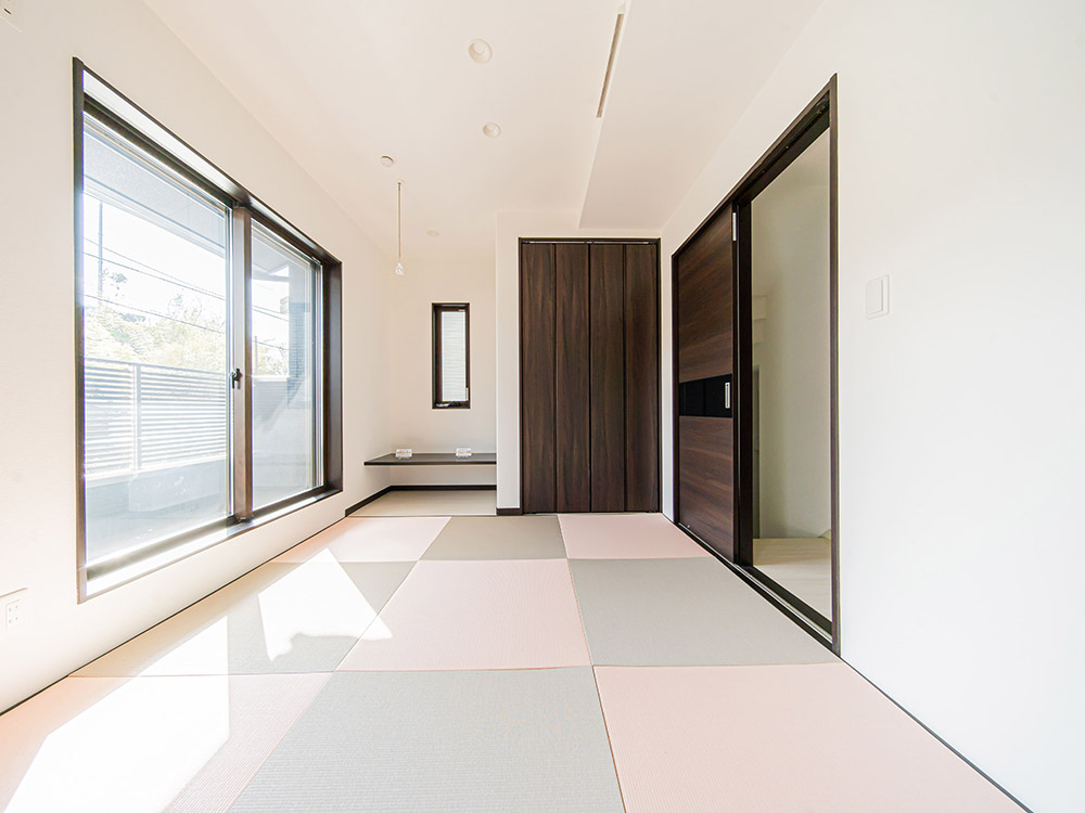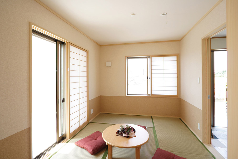 和室の印象を決めるアイテムが畳と壁の色。最近リビング横に作る和室では、へりのないおしゃれな琉球畳が人気です。へりのない畳は空間を広く見せられるので、3~4.5畳など小さい面積の和室を作るときには特におすすめです。