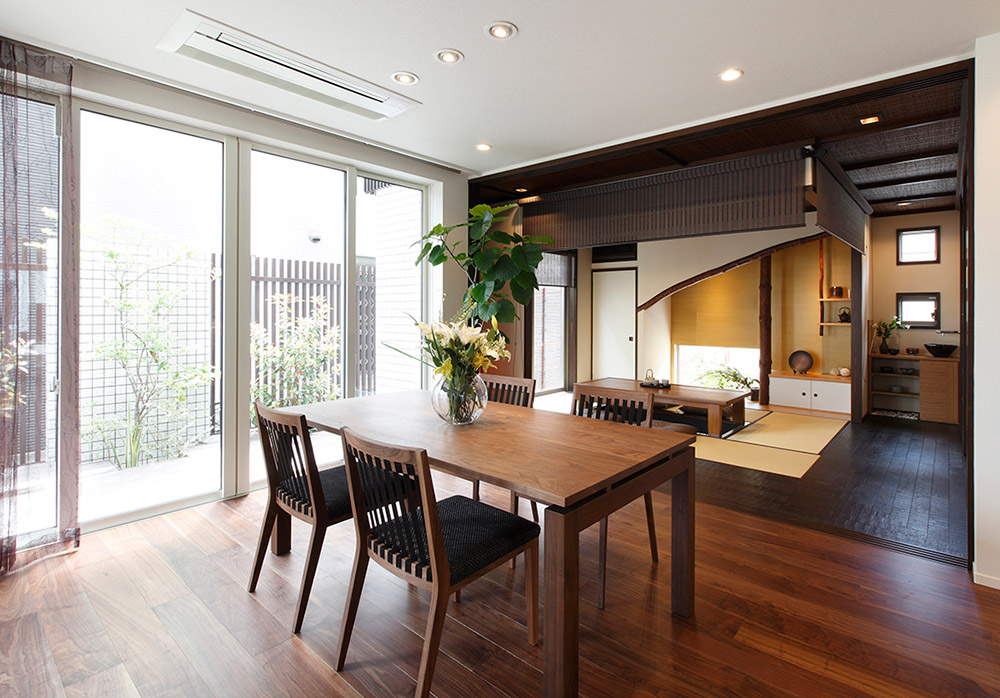 仕切りを開け放つことで、リビングと和室が一体となり、大空間を演出できます。