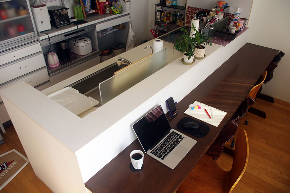 その場合は、キッチンカウンターのすぐ手前に、低くてコンパクトなカウンターを置き、子供にとって勉強しやすい学習机を作るのがおすすめです。カウンターは、奥行きの浅いものを選ぶのがポイントです。