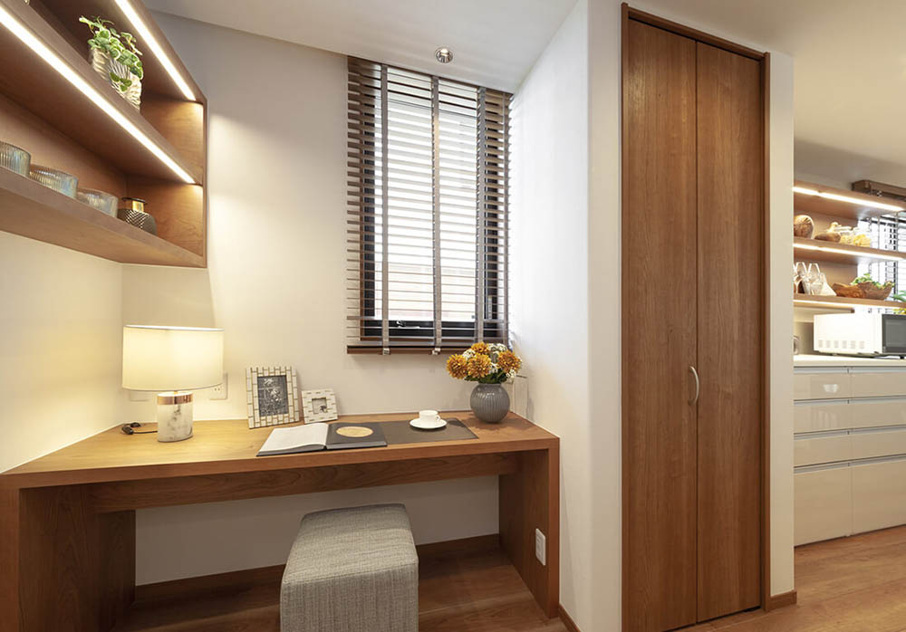 洗濯物を一時的に置く場所があれば、リビングに洗濯物を持ち込まずにすむのですっきりさせられます。このスペースは家計簿をつけたり、PC作業をしたりするスペースとしても活用できます。