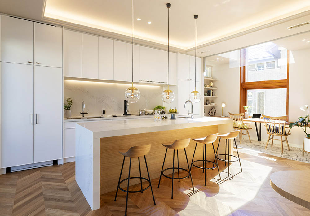 照明: 手元を明るく照らすダウンライトやペンダントライトを設置することで、作業効率が上がり、雰囲気も向上します。