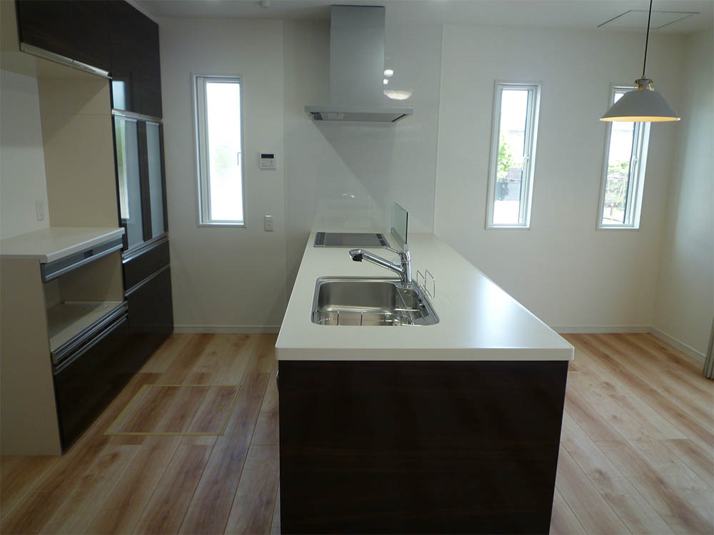 対面キッチンは、リビングダイニングに向かって設置されるタイプのキッチンです。開放感があるつくりが人気で、注文住宅では多く採用されています。料理中もリビングを向いて作業できるため、家族とコミュニケーションをとりやすいのがメリットです。子どもの様子も見やすく、子育て世帯にもおすすめできます。