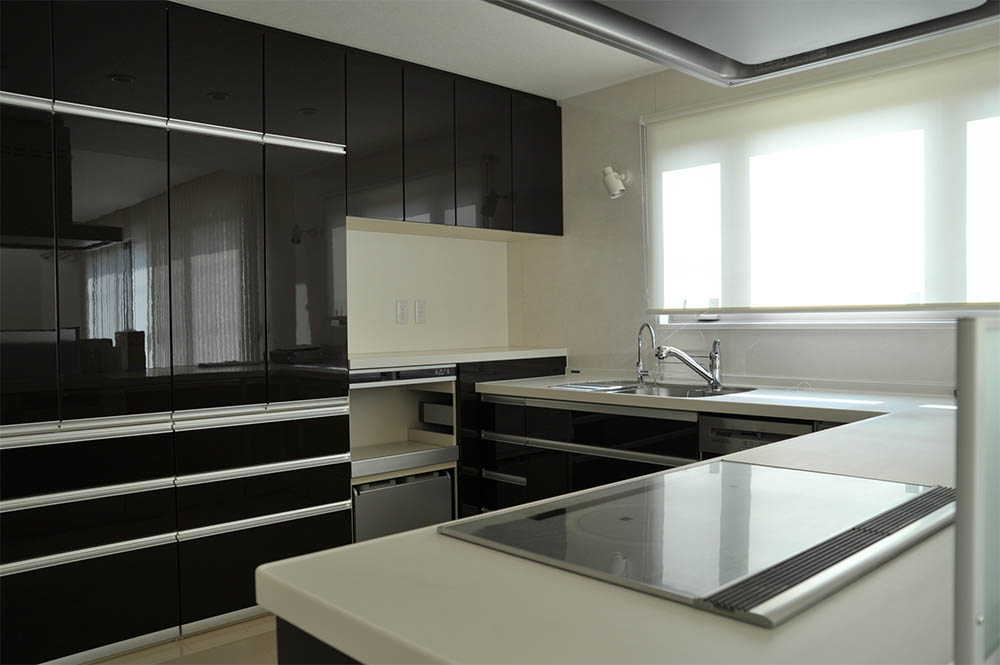 シンク・コンロ・作業台が一列に並んだレイアウトのキッチンで、壁付け・対面両方のタイプで採用されます。料理をする際は動線が横移動のみとなるためシンプルで、設置するのに広いスペースをとらないのがメリットです。ただし、キッチンを広くすると横の動線が長くなってしまったり、冷蔵庫まで距離ができてしまったりするデメリットもあります。