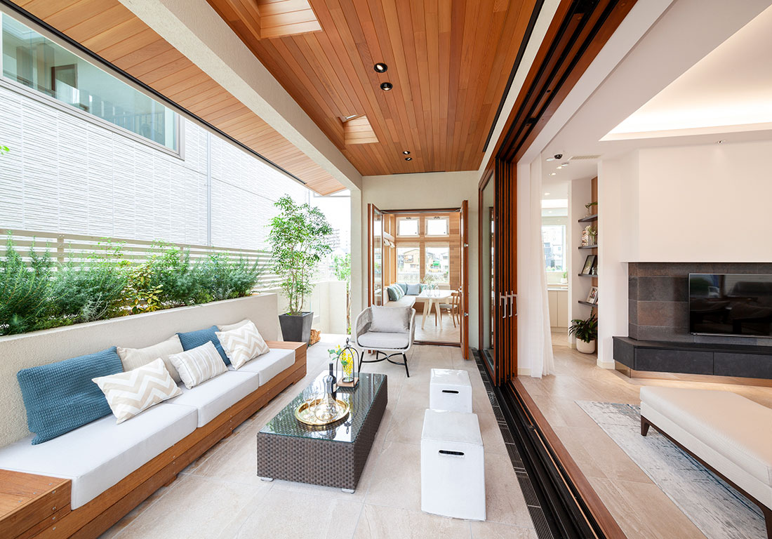 開放感、自然の安らぎ、四季の移ろいといったアウトドアの魅力を住宅(インドア)に取り入れるライフスタイル。
