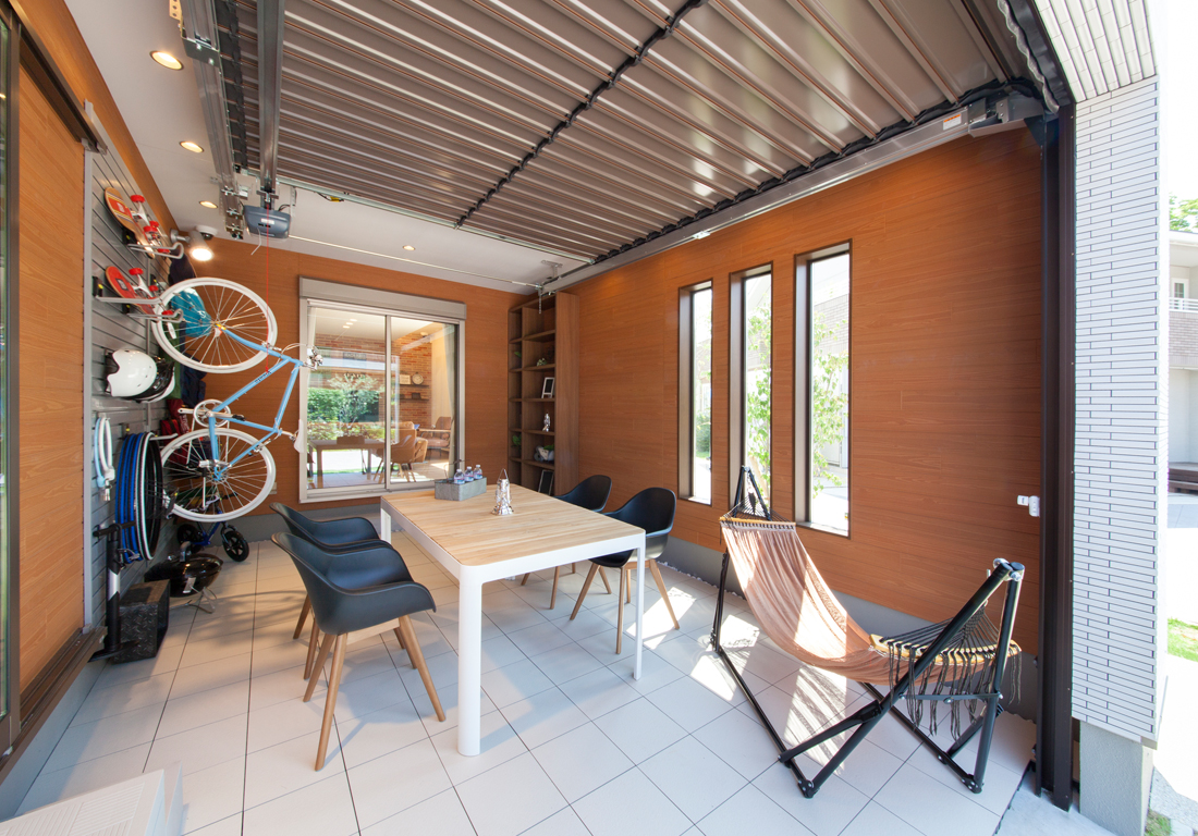 屋根あり/窓なしの半屋外空間は、注文住宅ならではのプランニング。まさに、ミドルドアの空間設計!