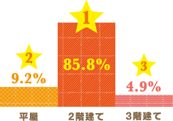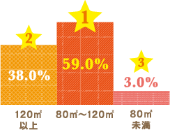 2階建てが約9割、総延床面積では80〜120㎡の家が約6割という結果に。広々とした住まいが実現できるのは戸建てならでは。近頃は、賃貸や店舗が併用できる多層階の住宅を検討される方も増えているようです。