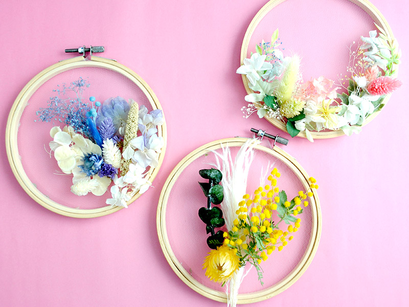 刺繍枠のフラワーアレンジメント