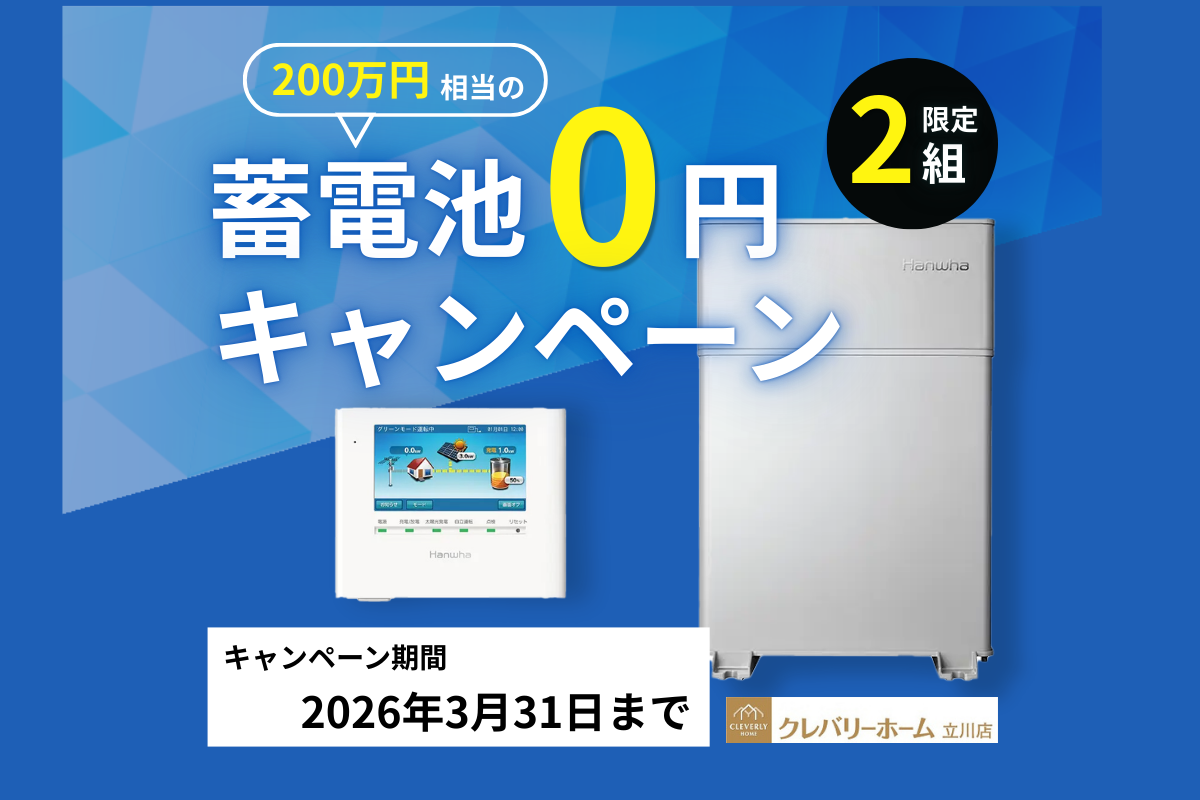 【3月末まで】クレバリーホーム立川店限定!「蓄電池0円設置」キャンペーン開催中