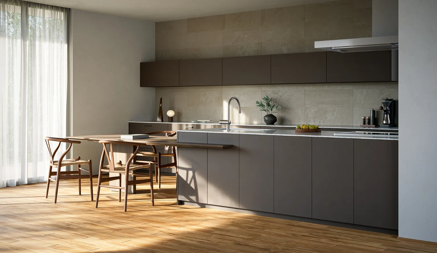 大開口窓、大空間に誘われるようにして自然豊かなリゾートの雰囲気を感じる内装。